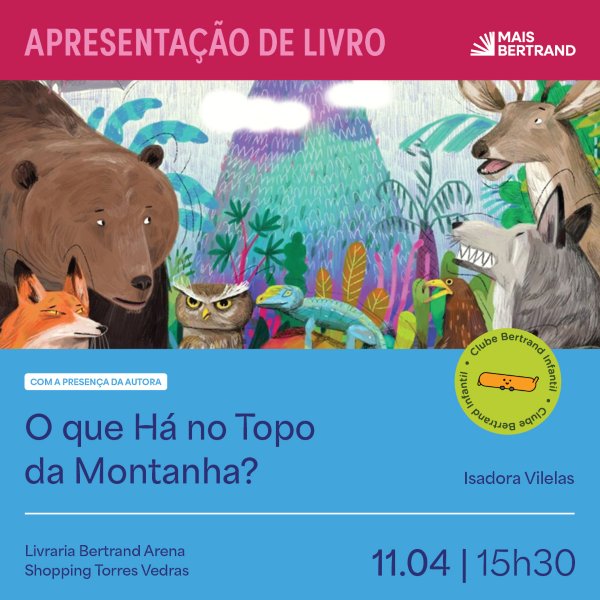 No próximo dia 11 de abril, pelas 15h30, assista à apresentação do livro “O que Há no Topo da Montanha?” na livraria Bertand do Arena Shopping. Visite-nos!