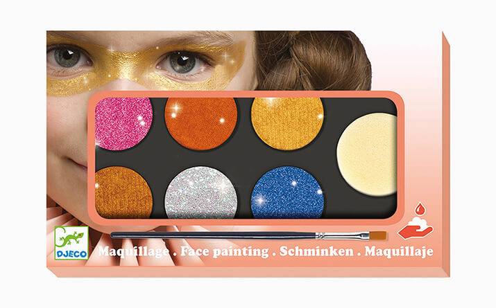 Sugerimos este kit de maquilhagem da Zippy próprio para as crianças e este pack de sombras brilhantes da Claire’s para os adultos. Junte ao look este glitter e terá uma pintura facial de sonho que pode ser feita de uma forma simples e divertida. Se quiser juntar mais elementos à sua maquilhagem, tem este pack de 100 brilhantes adesivos que pode colar onde quiser ou este conjunto, se tem em mente um look ainda mais vistoso.