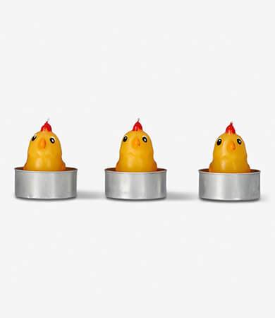 4. Velas: decore a sua mesa a rigor com estas velas de ovo ou estas em forma de galinha. Tem ainda a opção destas tea lights em forma de coelhinho da páscoa da loja Tiger. Se preferir manter a decoração mais simples e clássica, utilize esta vela verde do Gato Preto, para condizer com o tema da natureza.