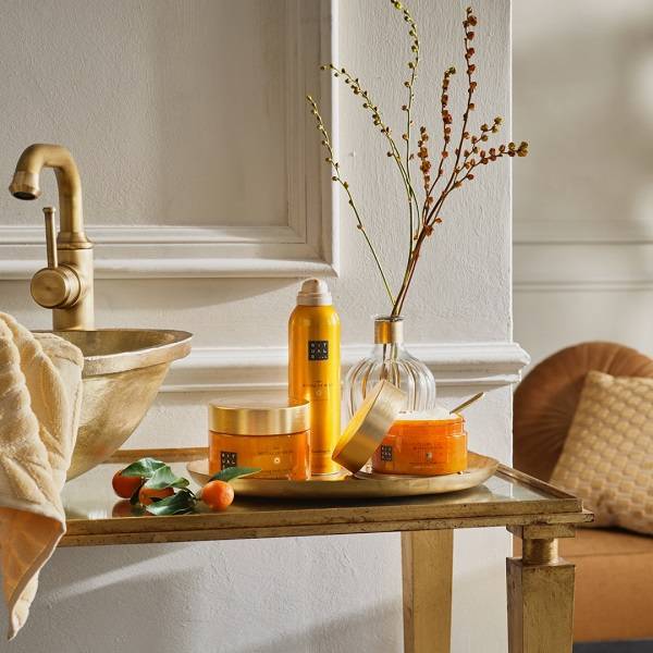 The Ritual de Mehr traz-lhe energia positiva e alegria com cada produto. O aroma da laranja doce e da madeira de cedro realça o humor, enche o coração com uma explosão de energia e traz calor interior. Deixe-se abraçar com bondade e amor, para expressar a sua felicidade como um raio de sol.